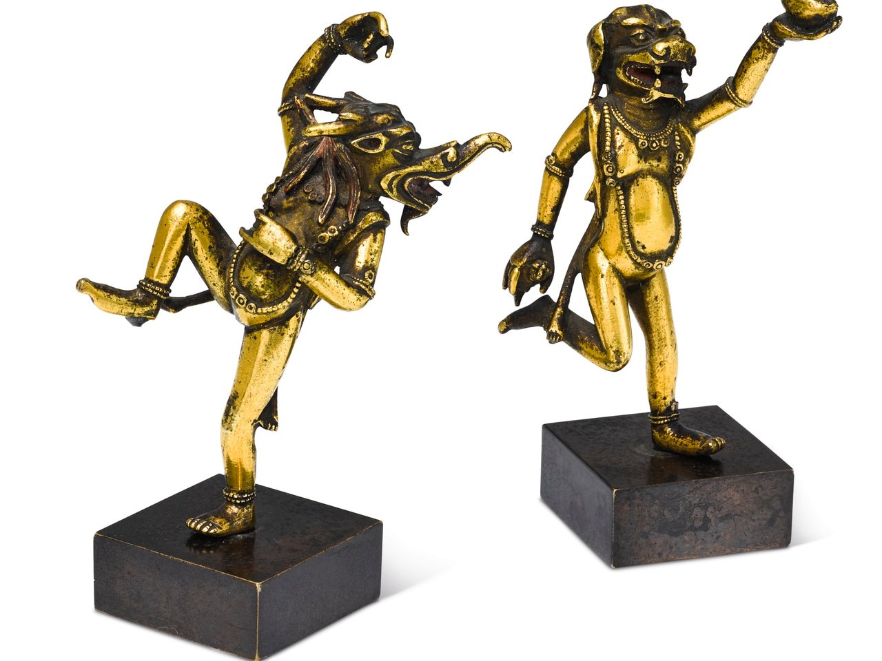 TWO GILT-BRONZE FIGURES OF SIMHAMUKHA AND MAKARAMUKHA