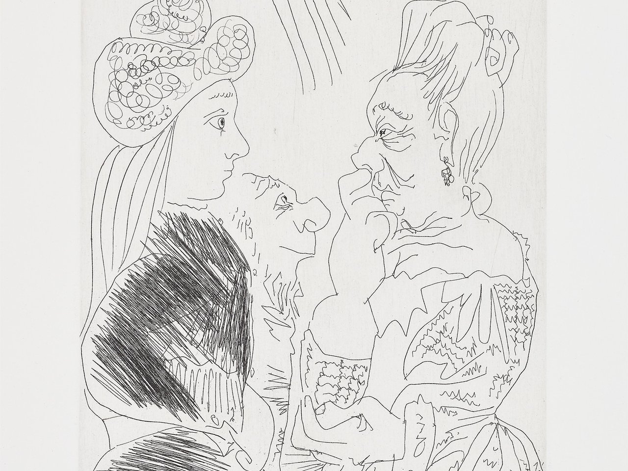 La bonne aventure, avec un curieux simiesque (Fortune Telling, with a Curious Ape), plate 26 from Séries 156 (Bl. 1881, Ba. 1887) by Pablo Picasso