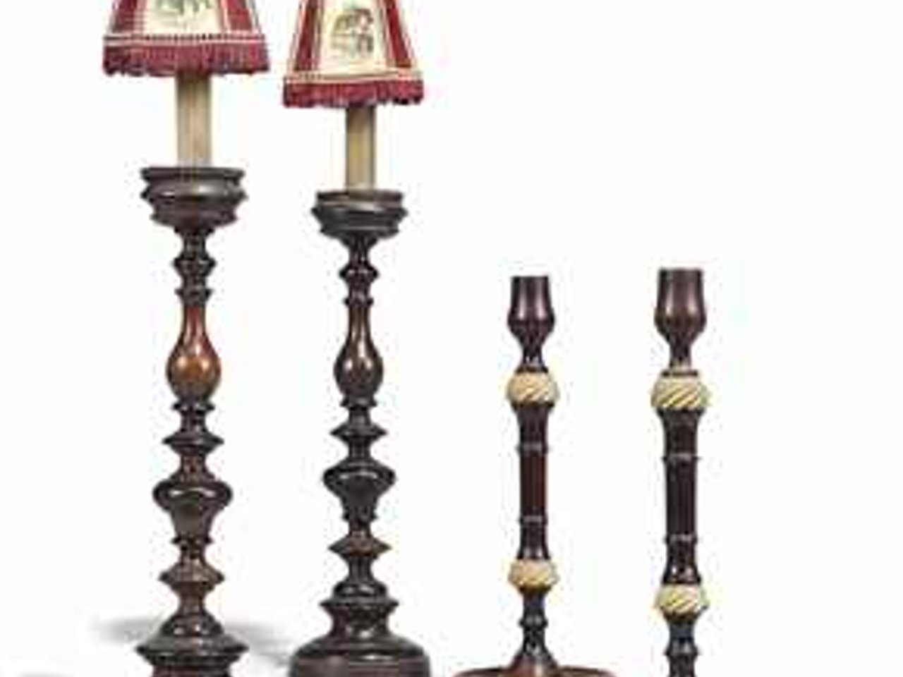 A PAIR OF GEORGE III MAHOGANY CANDLESTICKS by Anonymous