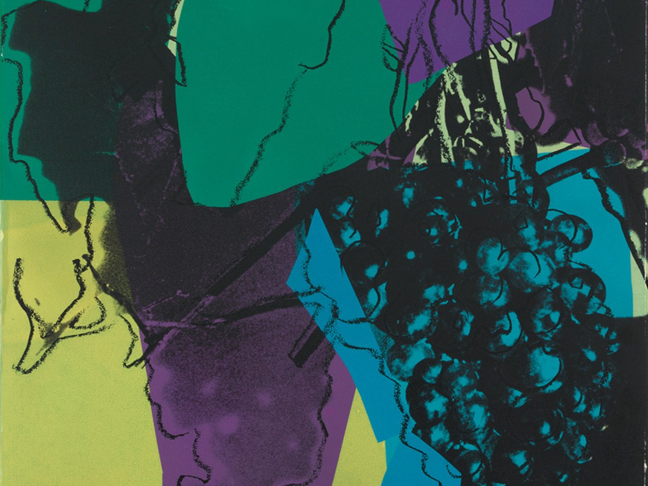 Warhol's repeated use of floral still life in printmaking dates back to around 1961, when he produced one of his characteristic blotted-line ink drawings of a basket filled with Mexican flowers, over which he hand-stamped watercolor petals on the flowers, to secure an illustration commission from Vogue magazine. With his meteoric rise to international artistic popularity in the early 1960s Warhol made one floral still life edition after another: Flowers , offset color lithograph, 1964, created to announce his exhibition at Leo Castelli Gallery, New York (see lots 152 and 156); the Flowers suite of 10 color screenprints, 1970 (see lot 158); and the Flowers series of 10 black and white screenprints, 1974, each with unique hand coloring in watercolor (see lot 157); culminating in this series of Grapes , 1979, a suite of six differently arranged bunches of grapes, branches and leaves overlayed with the artist's signature blocks of color and dark black contour lines.