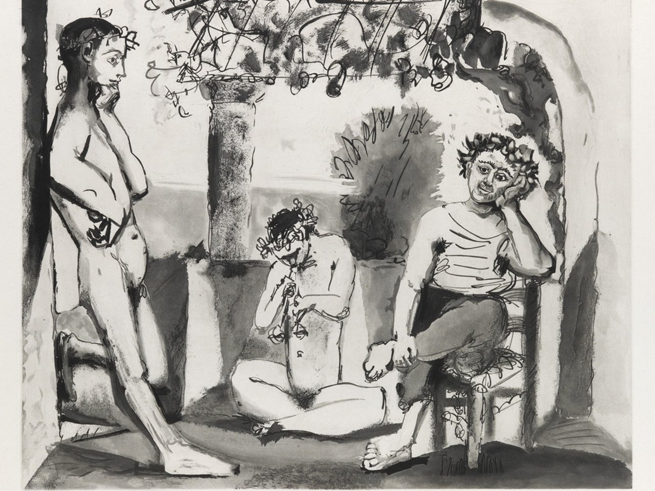 Aquatint, circa 1960. 475x560 mm; 18 3/4x22 1/8 inches, full margins. Signed and numbered 117/250 in pencil, lower margin. Published by Crommelynck, Paris, with the blind stamp lower left. A superb, richly-inked impression of this large print.