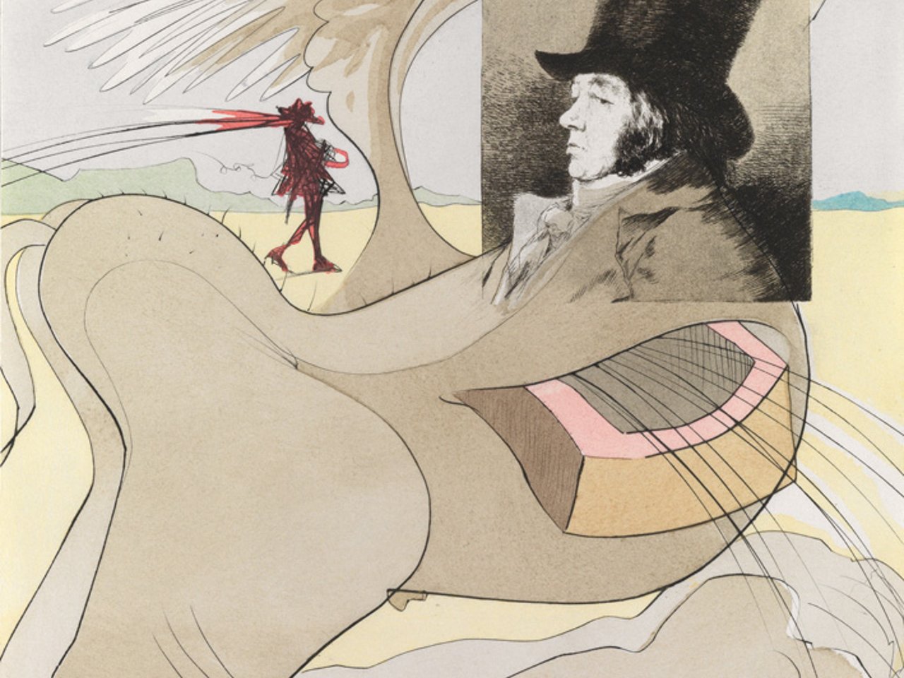 Portfolio with 80 heliogravures from Goya's etchings with aquatint from Los Caprichos reworked by Dalí with drypoint and with stencil coloring, 1977. 450x315 mm; 17 3/4x12 1/2 inches (sheets), full margins, loose as issued.
