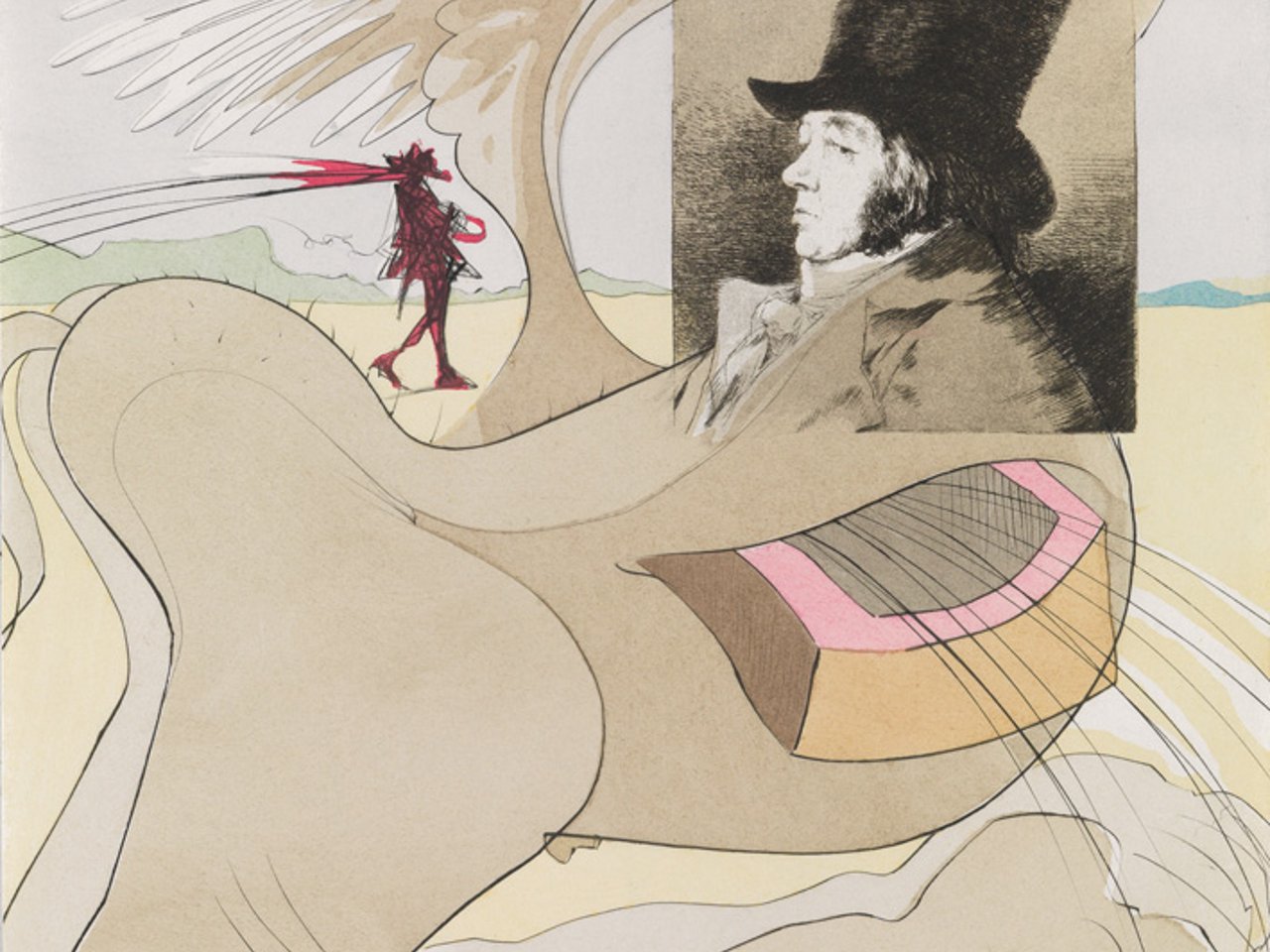 Portfolio with 80 heliogravures from Goya's etchings with aquatint from Los Caprichos reworked by Dalí with drypoint and with stencil coloring, 1977. 450x315 mm; 17 3/4x12 1/2 inches (sheets), full margins, loose as issued.