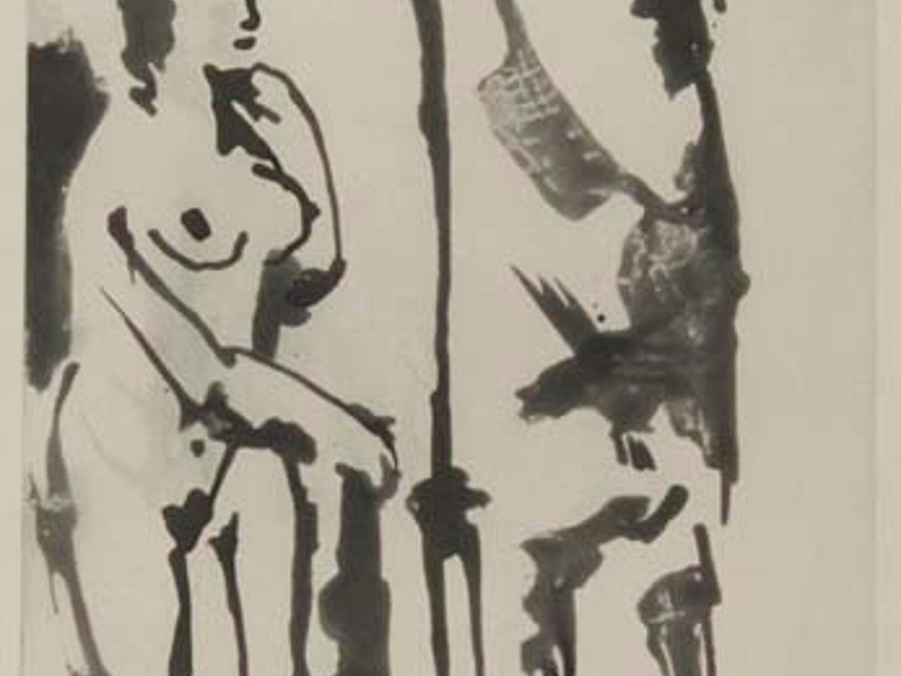 Aquatint on thin cream laid Japan paper, 1964-65. 385x277 mm; 151/4x11 inches, full margins. Signed and numbered XII/XX in pencil, lower margin. Printed by Crommelynck, Paris. Published by Louis Broder, Paris. From Sable Mouvant . A superb impression. Bloch 1188; Baer 1157.