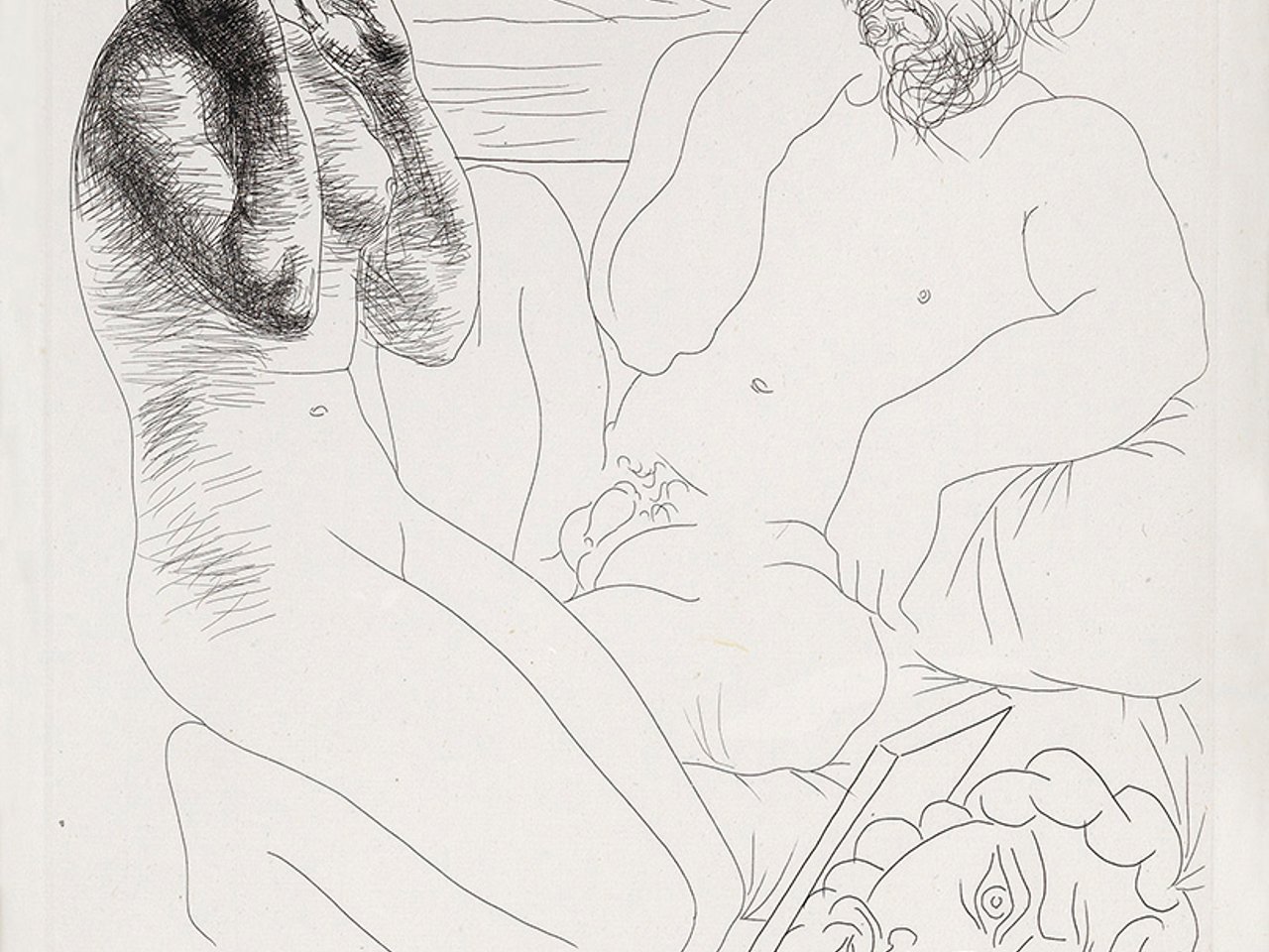 Etching, 1933. 367x300 mm; 14 1/2x11 7/8 inches, full margins. Edition of 260. Signed in pencil, lower right. Picasso watermark. Printed by Lacourière, Paris. Published by Vollard, Paris. A superb, dark impression with strong contrasts. Bloch 178; Geiser 331 Bd.