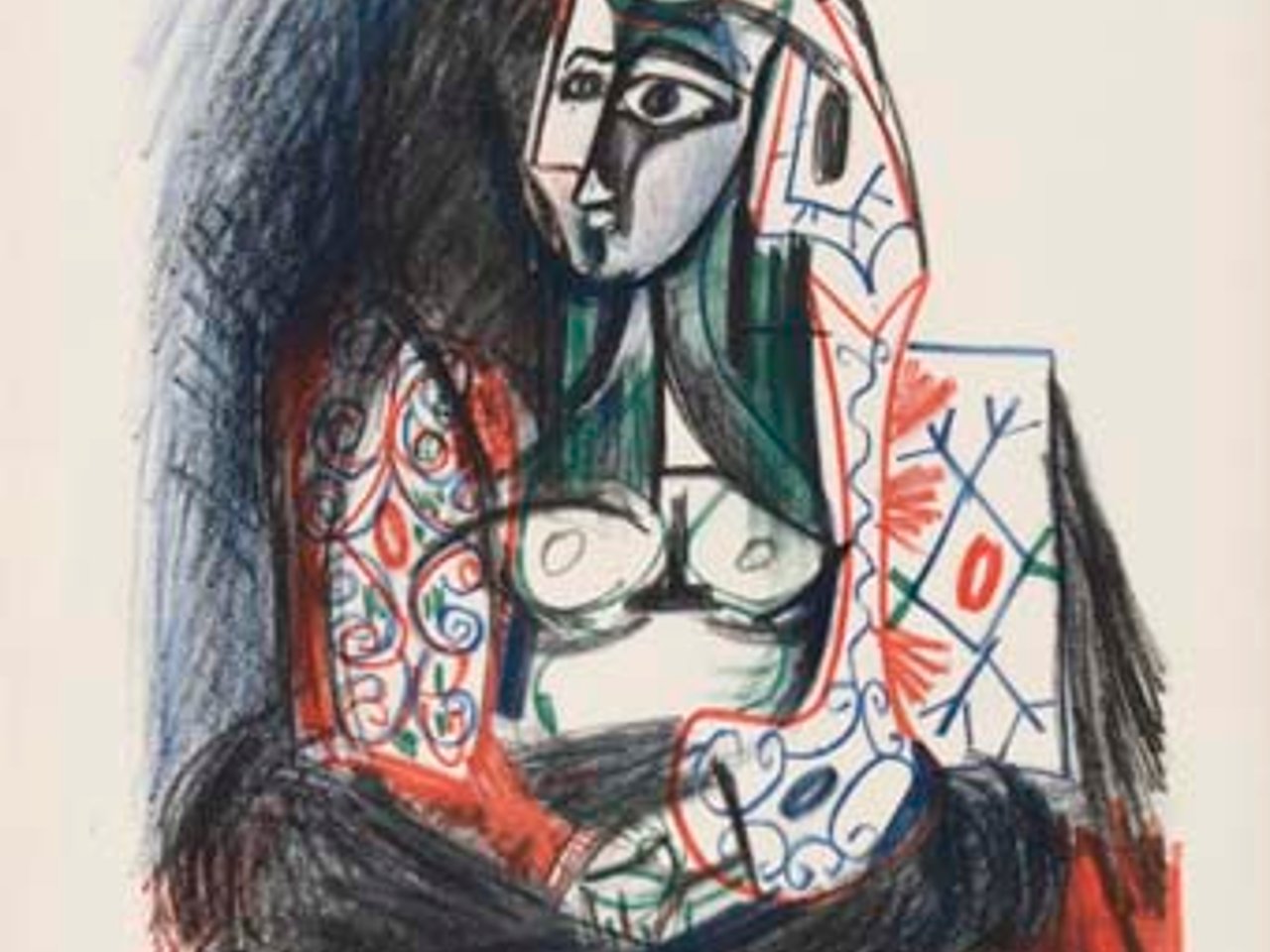 While Picasso signed many reproductions in intaglio, pochoir and lithography after his designs from the 1920s through the 1960s, there are no known dated prints after Picasso printed by Mourlot from the 1950s. The current print may therefore be an undescribed autograph work or, at the least, a hitherto unknown color lithograph after a design by Picasso which was never realized in an edition.