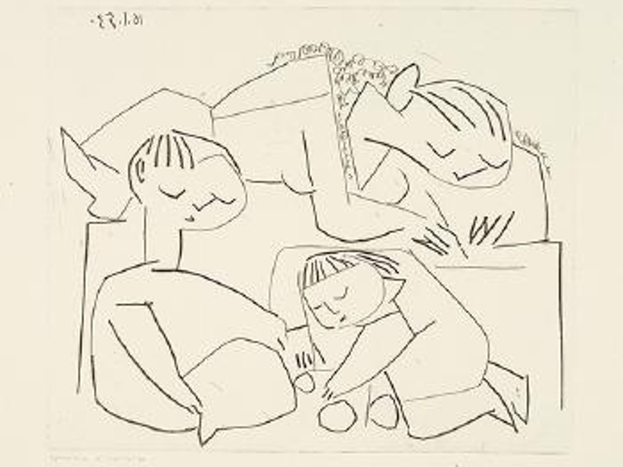 Françoise, Claude, Paloma: La Lecture et les jeux III by Pablo Picasso