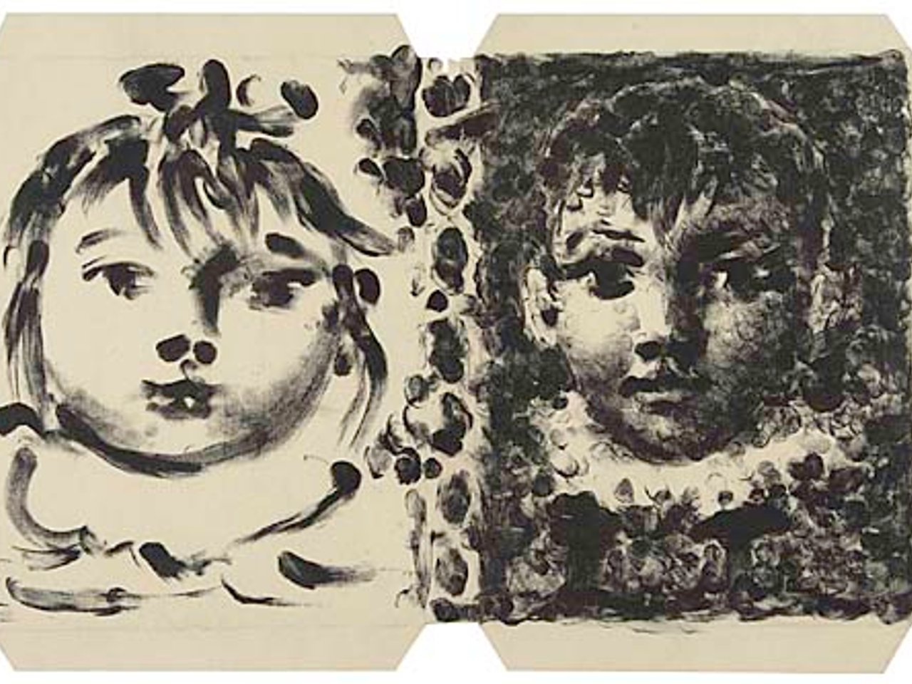Couverture Mourlot I (Deux Têtes) >, 1949. Edition of 2500 * Paloma et Claude >, 1950. Edition of 2000 * Couverture Mourlot III (Bacchanale) >, printed in ochre and black, 1955. Edition of 3000 * Couverture Mourlot IV (Deux Masques) >, 1963. Edition of 3000. Each trimmed and folded as covers.