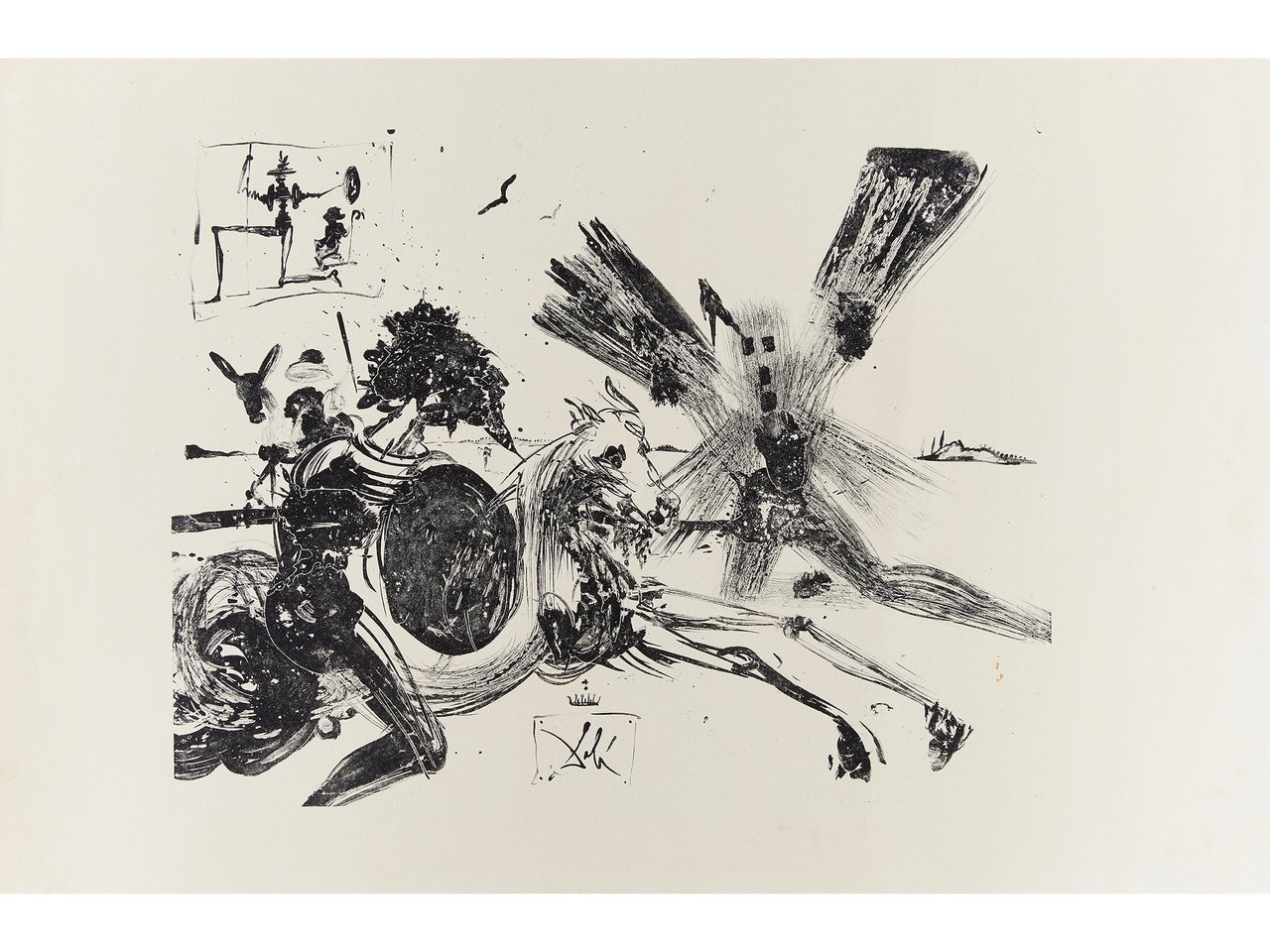 Salvador Dali (Spanish, 1904-1989), "Face in the Windmill," 1965, lithograph, unsigned edition aside from the edition of 150, printed by Hollander"s Workshop, Inc., New York, published by Sydney Lucas, New York, sheet (unframed): 25" 3". Provenance: Collection of master printer Irwin Hollander, New York; thence by discent.