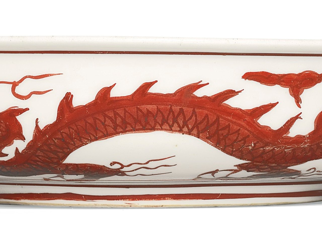 AN IRON-RED PAINTED ‘DRAGON’ DISH by Anonymous