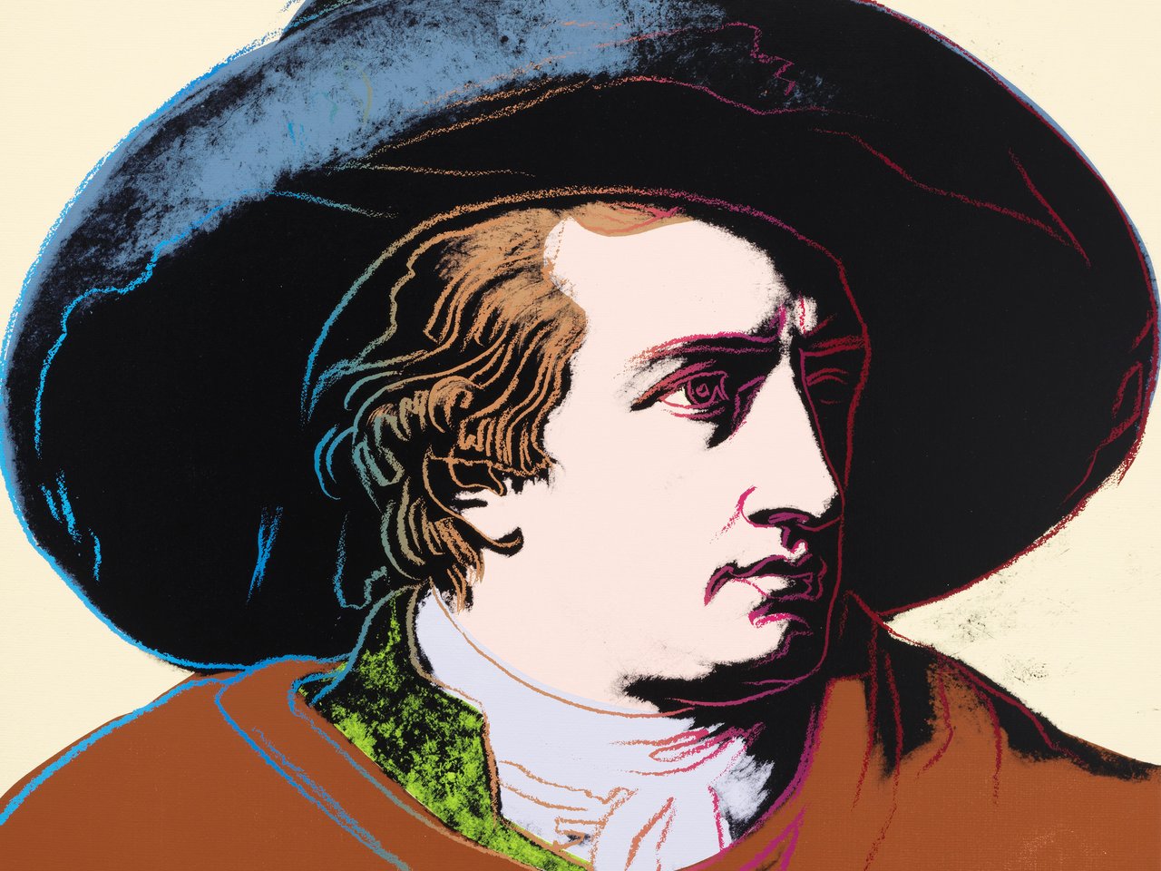 ,” Warhol focuses on the well-known portrait of the great German poet and color theorist, transforming it into a cult motif of pop art.