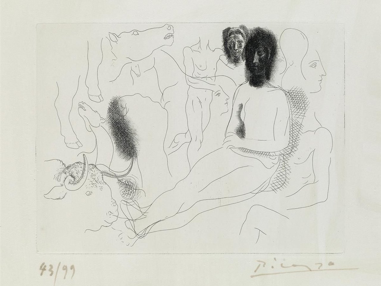 Nu Assis Entouré D'equisses De Bêtes Et D'hommes by Pablo Picasso