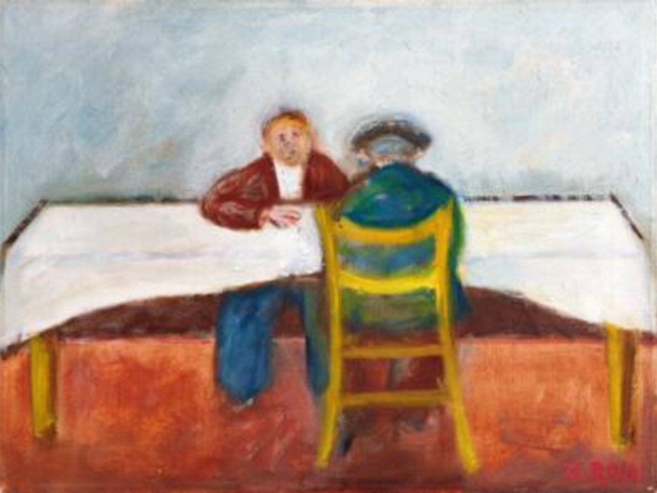 All"osteria (La tovaglia bianca), ca. 1955-56, signiert, Öl auf Leinwand, 45 x 60 cm, gerahmt