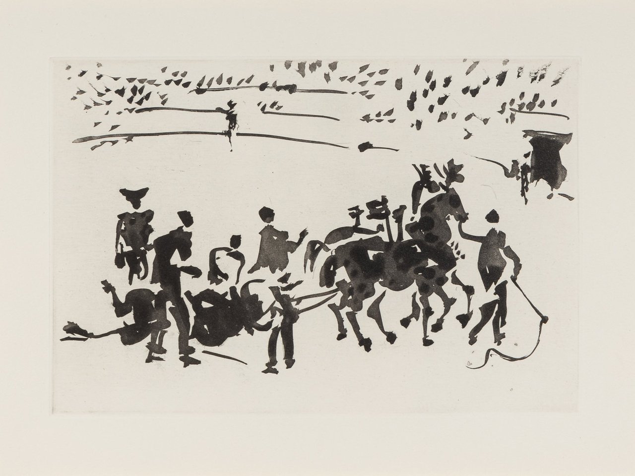 A pair of prints (El Arrastre; Los Cabestros retiran al Toro Manso) from 'José Delgado: La Tauromaquia' by Pablo Picasso