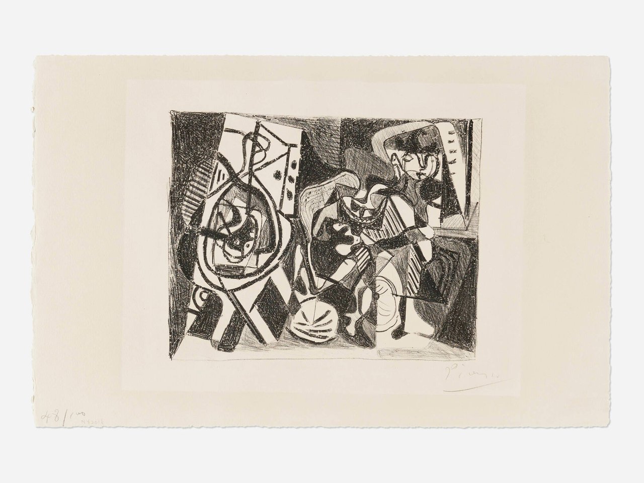 Signed to lower right ‘Picasso". Numbered to lower left "48/100". This work is number 48 from the edition of 100 printed by Charlot Frères, Paris and published by Éditions de la Galerie Simon, Paris.